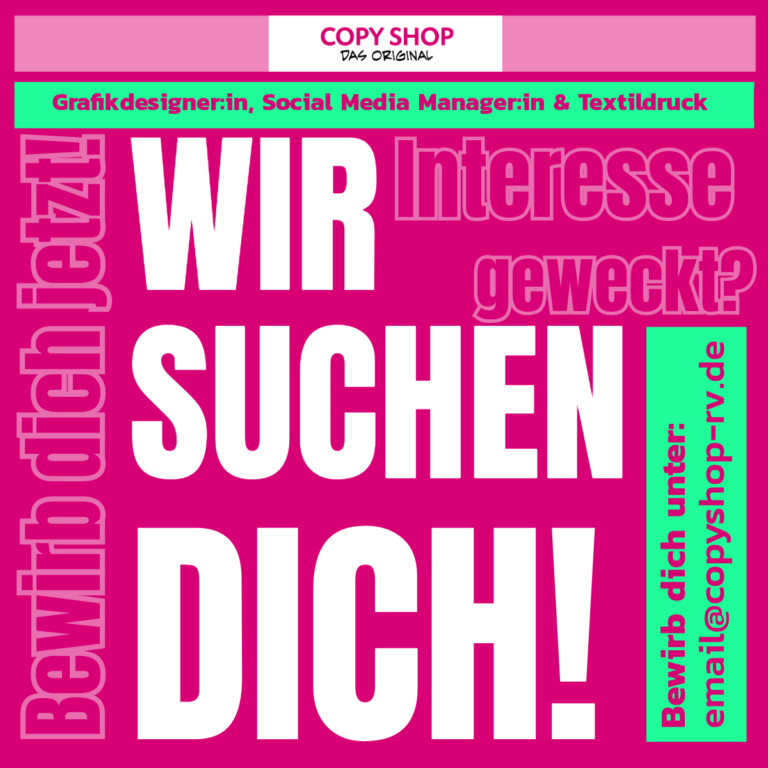 Als CopyShop in Weingarten verfügen wir seit 1988 über umfangreiche Erfahrung in Sachen Druck bis Textilveredelung. Wir begleiten Sie kompetent und zuverlässig von der Planung bis zu Ihrem fertigen Produkt. Kontaktieren Sie uns für eine persönliche Beratung.